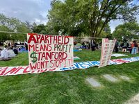 في 24 أبريل 2024، أقام مجموعة طلبة مخيماً في باحة جامعة هارڤرد.[97]