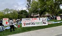 نصب الطلاب المتظاهرون أكثر من اثنتي عشرة خيمة في سپرول پلازا في جامعة كاليفورنيا-بركلي، قائلين إنهم سيبقون حتى تقاطع الجامعة الشركات المشاركة في الحرب. وتعهد مسؤولو الجامعة بإبعاد المتظاهرين الذين نصبوا الخيام أو "عطلوا النشاط الأكاديمي" بالقوة.[41]
