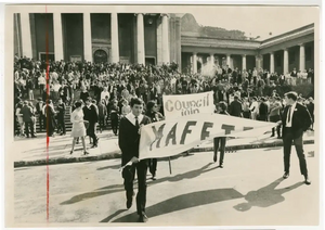 On 30 January 300 student protesters from the University of Warsaw and the National Theater School were beaten with clubs by state arranged anti-protestors.[28] On 8 March, the 1968 Polish political crisis began with students from the University of Warsaw who marched for student rights were beaten with clubs. The next day over two thousand students marched in protest of the police involvement on campus and were clubbed and arrested again. By 11 March, the general public had joined the protest in violent confrontations with students and police in the streets. The government fought a propaganda campaign against the protestors, labeling them Zionists. The 20 days of protest ended when the state closed all of the universities and arrested more than a thousand students. Most Polish Jews left the country to avoid persecution by the government.[29]