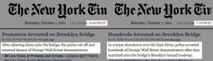في أكتوبر، 2011 نشرتنيويورك تايمز عن توافد المتظاهرين على جسر بروكلين.