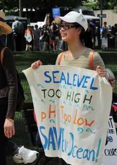 - ^ أ ب Turley, Carol; Gattuso, Jean-Pierre (يوليو 2012). "Future biological and ecosystem impacts of ocean acidification and their socioeconomic-policy implications". Current Opinion in Environmental Sustainability. 4 (3): 278–286. Bibcode:2012COES....4..278T. doi:10.1016/j.cosust.2012.05.007.