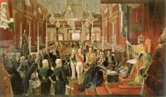The reason for the imperial title was that the title of king would symbolically mean a continuation of the Portuguese dynastic tradition and perhaps of the feared absolutism, while the title of emperor derived from popular acclamation as in Ancient Rome.[36][37] On December 1, 1822 (anniversary of the acclamation of João IV, first King of the House of Braganza) Pedro I was crowned and consecrated.[38]