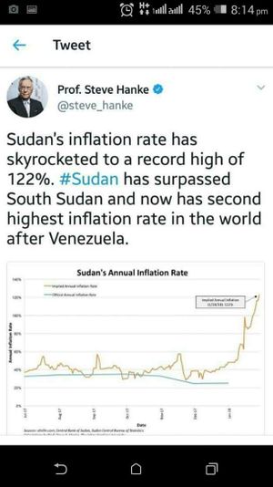 - ^ "معدلات التضخم في السودان تقترب من 50 في المئة". روسيا اليوم. 2013-04-05. Retrieved 2013-04-05.