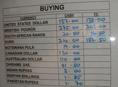 Exchange rates: Malawian kwachas per US dollar -730.00 (20/June/2016), 460.00 (20/Jan/2015), 360.00 (6/Feb/2013), 165.961 (1/Sep/2011), 145.179 (2009), 135.96 (2006), 108.894 (2005), 108.898 (2004), 97.433 (2003), 76.687 (2002)