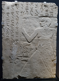 With the growing number of biographical inscriptions in non-royal tombs,[26] our knowledge of the contemporary history broadens.[27] For example, we hear of an unsuccessful plot against Pepi I.[28] We also read a letter written by the young king Pepi II, excited that one of his expeditions will return with a dancing pygmy from the land of Yam, located to the south of Nubia.[29]