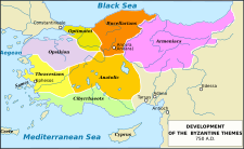 26. ^ Ostrogorsky 1997, p. 101 Ostrogorsky states in the footnotes that in Theophanes 303(under the year 622), "the expression 'the districts of the themes' shows that the process of establishing troops (themes) in specific areas of Asia Minor has already begun at this time."