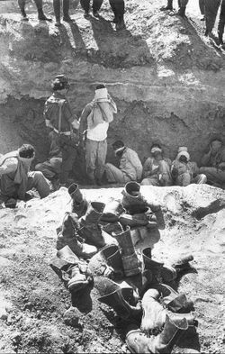 وحسب بعض الروايات أن جنود الاحتلال كانوا يأمرون الأسرى بحفر قبورهم بأيديهم والانبطاح على الارض ثم تسير الدبابات فوقهم.