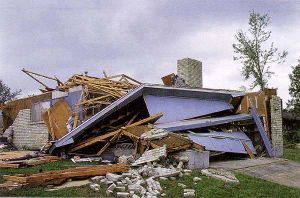 بعد أن تلاشى الإعصار في يوم الثلاثاء ذاك، 16/5/1995، هُرعنا نحو الشرق لنكون جنبا إلى جنب مع العاصفة بغية العثور على إعصار متوسط جديد. وقد صادَفَنا، ونحن ننطلق في خط متعرج تحت المطر على طرقات مغطاة بالحصى، صفين من أعمدة الطاقة، يصل عددها إلى ثمانية، مطروحة أرضا في الحقول، وقد قُصمت من علو قدمين عن سطح الأرض. مما يؤكد أنه كان هناك إعصار قمعي شديد محجوبا بالأمطار إلى الشمال الشرقي منا. (قرأت في صحف اليوم التالي أن 150 عمودا قد سقطت).