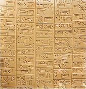 - حضارة نقادة على النيل, 4000 ق.م.–3000 ق.م.. First hieroglyphs appear thus far around 3500 ق.م. as found on labels in a ruler's tomb في أبيدوس.