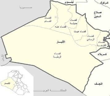 الإقضية | قضاء الرمادي | قضاء الفلوجة | قضاء هيت | قضاء القائم | قضاء الرطبة | قضاء حديثة | قضاء عانة | قضاء راوة |