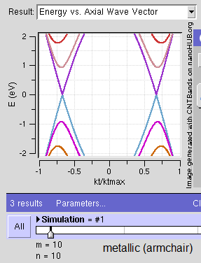 أنابيب الكربون النانوية (CNTs) هي خواص كربونية ذات بنية نانوية أسطوانية. يمكن اعتبارها كگرافين ملتف. عندما يتم لفه في زوايا محددة ومنفصلة ("حلزونية") ، يحدد مزيج زاوية الدوران ونصف القطر ما إذا كان الأنابيب النانوية تحتوي على فجوة نطاقية (أنصاف نواقل) أو لا توجد فجوة نطاقية (معدنية).