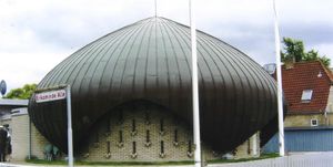 A Mosque in Hvidovre outside Copenhagen run by the Ahmadiyya. Constructed in 1967, this was the first mosque in the Nordic countries, although some Islamic authorities consider the Ahmadiyya to be heretics.