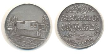 عملة تذكارية مصرية صدرت في 1948 عن مشروع الإكثار من الملكيات الصغيرة. أول توزيع لأراضي الدولة على الشعب منذ زمن محمد علي. الملك فاروق كان يوزع 5 أفدنة على كل مواطن شرط أن يتوافر فيه صفات محددة للحفاظ على خصوبة التربة ومعدل انتاجها.