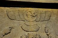 نقش جداري للإله القومي الآشوري في أيقونة هجينة "لذكر مجنح".