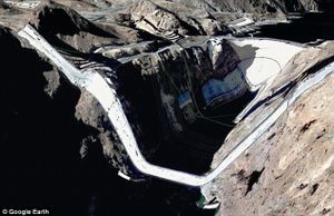 و الأغرب بنفس القدر هو جسر سد جلين كانيون الذى ينتصب فوق نهر كولورادو وهو يبدو كما لوكان قد سقط وصولا الى المياه على الجانبين ، وسوف يعبر سطح الماء.