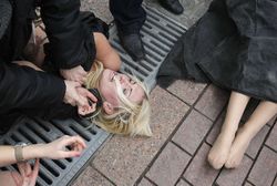 الأمن الروسي يعتقل احدى المحتجات، في موسكو، ديسمبر 2011.