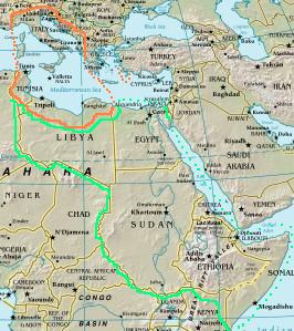After the United Kingdom signed the Anglo-Italian Easter Accords in 1938, Mussolini and foreign minister Ciano issued demands for concessions in the Mediterranean by France, particularly regarding Djibouti, Tunisia and the French-run Suez Canal.[45] Three weeks later, Mussolini told Ciano that he intended for Italy to demand an Italian takeover of Albania.[45] Mussolini professed that Italy would only be able to "breathe easily" if it had acquired a contiguous colonial domain in Africa from the Atlantic to the Indian Oceans, and when ten million Italians had settled in them.[34] In 1938, Italy demanded a sphere of influence in the Suez Canal in Egypt, specifically demanding that the French-dominated Suez Canal Company accept an Italian representative on its board of directors.[46] Italy opposed the French monopoly over the Suez Canal because, under the French-dominated Suez Canal Company, all Italian merchant traffic to its colony of Italian East Africa was forced to pay tolls on entering the canal.[46]