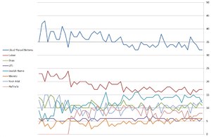 - ^ أ ب "Likud weakens, Labor gains, Kadima collapses". Retrieved 3 August 2012.