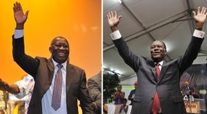 في 2 ديسمبر 2010، أعلن عن فوز الحسن واتارا في الانتخابات الرئاسية بنسبة 54.1 في المائة من الأصوات على منافسه لوران گباگبو ، الذي أحرز 45.9 في المئة من الأصوات، حسب ما أعلنت اللجنة الانتخابية المستقلة. وفي اليوم التالي صرح رئيس المحكمة الدستورية العاجية، وهو حليف لگباگبو عن بطلان فوزر واتارا، وألغت المحكمة الدستورية مئات الآلاف من الأصوات في معاقل واتارا، على أساس قيام جنود متمردين بعمليات تخويف وتحايل، وأعلنت فوز گباگبو.[11] وفي 4 ديسمبر 2010، أدى الرئيس المنتهية ولايته لوران گباگبو اليمن الدستورية كرئيس للبلاد لفترة جديدة، ومن جهته أدى واتارا أيضا يمينا منافسة لتولي الرئاسة، وقال إنه سيبدأ حكما موازيا.