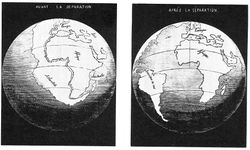 وعلى مر الأزمنة تحركت أجزاء كل من القارتين الكبيرتين واتخذ الوضع الحالي لليابسة مشكلا القارات الجديدة. وقد أثبتت الإكثشافات صحة نظرية الإنجراف القاري لفـِجنر رغم أنها لم تلقى قبولا في الأوساط العلمية في وقتها. لأنه لم يستطع تقديم سبب مقنع يفسر به مصدر الطاقة الهائلة اللازمة لهذه التحركات.