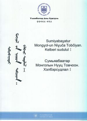 - B. Sumiyabaatar (mong.), "Монголын Нууц Товчоон, Хэлбэрсудлал I", "The Mongolian Secret History. Morphology I", 499 p., 2012, ISBN 978-99962-842-6-7