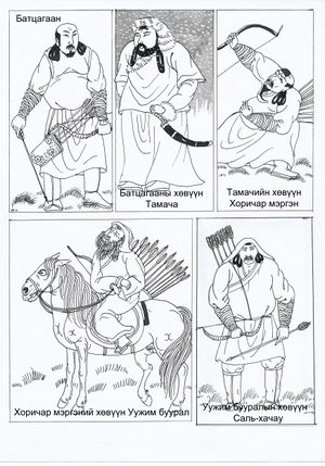 - B. Sumiyabaatar (mong.), "Чингисийн алтан ургийн Угийн бичиг ба Гэрийн уеийн бичмэл", "The Genealogy of the Genghis's Mongols", 720 pp., 2002, ISBN 99929-5-552-X