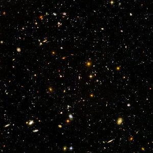 وتبين صورة المنطقة العميقة جدا المأخوذة بتلسكوب هابل عددا من المجرات الصغيرة تتداخل لتكوين مجرات أكبر وهي على بعد 13 مليار من السنين الضوئية، عندما كان الكون 5 % من عمره الحالي .[15]