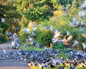 ![]() A photograph with an exposure time of 1/13 second blurs the motion of flying birds. |