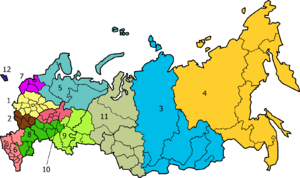 مؤخراً تم إعلان 7 مناطق اتحادية شاسعة (4 في أوروبا و3 في أسيا) كطبقة ادارية عليا فوق الكيانات ال89 تحت المستوى الوطني.