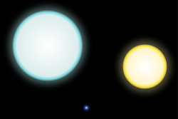 الأقزام البيضاء هي نجوم شديدة الكثافة والصغر. تظهر على اليمين الشمس، وفي الوسط قزم أبيض، وعلى اليسار نجم ثالث. وقد سبّب تواجد الأقزام البيضاء في الثريا مشكلة بالنسبة للفلكيين.
