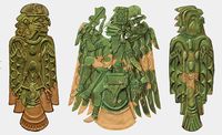 The climate in this area was drier than areas in the eastern woodlands, hindering maize production, and the lower population on the plains to the west may have meant fewer neighboring competing chiefdoms to contend with. Major sites such as Spiro and the Battle Mound Site are in the Arkansas River and Red River Valleys, the largest and most fertile of the waterways in the Caddoan region, where maize agriculture would have been the most productive.[15] The sites generally lacked wooden palisade fortifications often found in the major Middle Mississippian towns. Living on the western edge of the Mississippian world, the Caddoans may have faced fewer military threats from their neighbors. Their societies may also have had a somewhat lower level of social stratification.