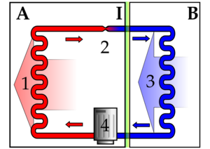 ودورة التبريد في الثلاجة عبارة عن يسار: داخل الثلاجة (مبخر، وصمام خلخلة)، ويمين: خارج الثلاجة (ضاغط، ومكثف) ويفصل عازل حراري بين الداخل والخارج. ودورة التبريد في الثلاجة تعتمد على تحويل غاز البروبان من سائل إلى غاز.. غاز البروبان المستخدم في التبريد يتحول إلى غاز عند درجة حرارة منخفضة.