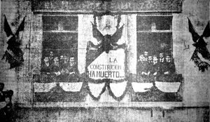 1903. شعار على راية يقول: "الدستور مات" (La Constitución ha muerto).