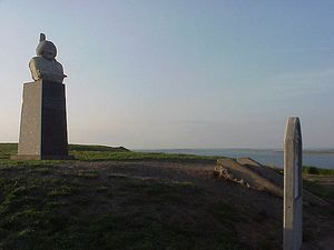 نصب الثور الجالس عند قبره المزعوم، موبريدج، داكوتا الجنوبية، 2003.