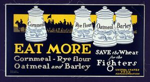 Gross farm income increased more than 230% from 1914 to 1919. Apart from 'wheatless Wednesdays' and 'meatless Tuesdays' due to poor harvests in 1916 and 1917, there were 'fuelless Mondays' and 'gasless Sundays' to preserve coal and gasoline.[39]