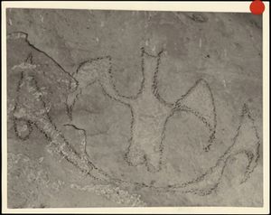 Charcoal drawings can be found on limestone rock shelters in the centre of the South Island, with over 500 sites[5] stretching from Kaikoura to North Otago. The drawings are estimated to be between 500 and 800 years old, and portray animals, people and fantastic creatures, possibly stylised reptiles.[6] Some of the birds pictured are long extinct, including moa and Haast's eagles. They were drawn by early Māori, but by the time Europeans arrived, local Māori did not know the origins of the drawings.[7]