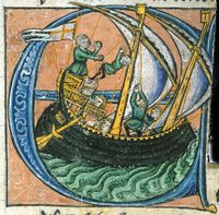 داگوبرت مبحراً فوق سفينة عليها صليب القديس جورج