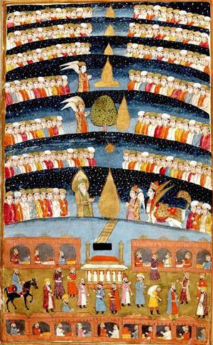 ،[الآية 16] وقال النبي: «إن في الجنة مائة درجة أعدها الله للمجاهدين في سبيل الله، ما بين الدرجتين كما بين السماء والأرض، فإذا سألتم الله فاسألوه الفردوس، فإنه أوسط الجنة، ومنه تفجر أنهار الجنة، وفوقه عرش الرحمن.»[18] وسبب تفاضل الدرجات بسبب اختلاف أصحابها في الأعمال.