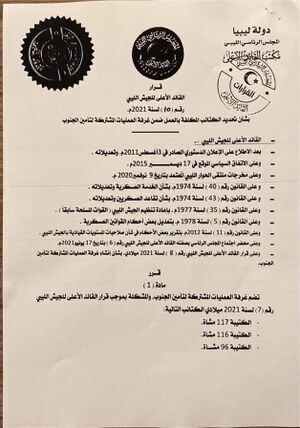 بيان تشكيل قوة لمكافحة الإرهاب والجريمة المنظمة بجنوب ليبيا، يونيو 2021.