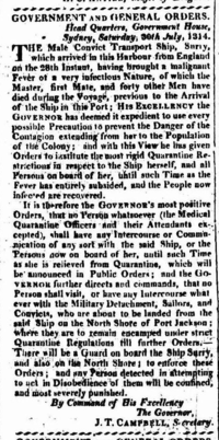السفينة سري، ميناء سيدني، 1814 (التيفود)