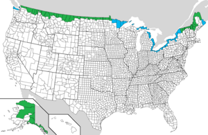 - ^ U.S. Census Bureau. 2011. "U.S.-Canada and U.S.-Mexico Border Lengths" (table). Geography and Environment, p. 223 in Statistical Abstract of the United States. Washington: U.S. Department of Commerce. Retrieved April 29, 2020.