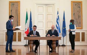 أدى النزاع حول حقوق الصيد للسفن والصيادين الإيطاليين في مياه الجرز اليونانية إلى تأجيل الاتفاق على الاتفاق النهائي الذي اكتمل في 9 يونيو 2020[10]، حيث وقعت إيطاليا واليونان اتفاقية لترسيم الحدود البحرية بين البلدين في البحر الأيوني، والتي تعتبر حسب وزير الخارجية اليوناني نيكوس دنياس، امتداداً لاتفاقية 1977.[11]