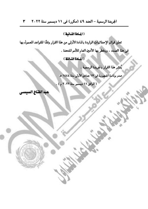 - ^ "قرار جمهوري بشأن الحدود البحرية الغربية لمصر في البحر المتوسط". جريدة الأهرام. 2022-12-13. Retrieved 2022-12-13.