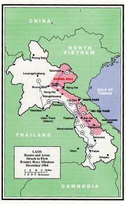 The North Vietnamese Army, in collaboration with the Pathet Lao, invaded Laos in 1958 and 1959, occupying the east of the country to use for its Ho Chi Minh trail supply corridor and as a staging area for offensives into South Vietnam. There were two major theatres of the war, one for control over the Laotian Panhandle and the other was fought around the northern Plain of Jars. From 1961 onward, the US trained Hmong tribesmen to disrupt North Vietnamese operations and in 1964, the US began bombing North Vietnamese supply routes.