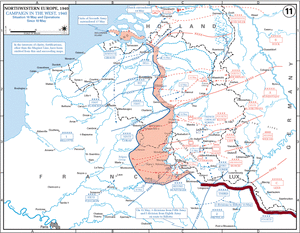 في 10 مايو 1940 شنت ألمانيا هجوماً على كل من لوكسمبورگ وهولندا وبلجيكا، واستمر القتال في لوكسمبورگ حتى ظهر يوم 10 مايو[75]، في حين قاتل الهولنديون حتى قصف روتردام في 14 مايو[76]، وصمدت بلجيكا حتى 28 مايو[77].