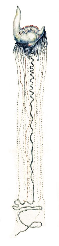 Velella, the by-the-wind sailor, is a cnidarian with no means of propulsion other than sailing. A small rigid sail projects into the air and catches the wind. Velella sails always align along the direction of the wind where the sail may act as an aerofoil, so that the animals tend to sail downwind at a small angle to the wind.[2]