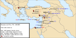 الصراع الأولي وصل إلى نهايته خلال العهود من الإمبراطور البيزنطي ليو الثالث من إيساوريان و الخليفة معاوية عمر بن عبدالعزيز, بعد الحصار العربي الثاني للقسطنطينية في 717-718, عندما شنت القوات المسلمة الأرضية, بقيادة مسلمة بن عبدالملك,خطأ استشهاد: وسم الفتح <ref> غير صحيح أو له اسم سييء. هزمت من قبل أسوار القسطنطينية وعندوصول القوات البلغارية المتحالفة في الوقت المناسب حتى لكون الاسطول البحري الأموي قد هزم من قبل النار اليونانية: