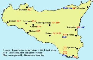 في 674 الخليفة الأموي معاوية بن أبي سفيان حاصر القسطنطينية وهى في قبضة قسطنطين الرابع. في هذه المعركة ، فإن الأمويين لم يتمكنوا من اختراق جدران ثيودوسي وفرض حصارا على المدينة على طول نهر البوسفور. ومع اقتراب فصل الشتاء اضطر المحاصرون الى الانسحاب الى جزيرة على بعد 80 ميل[convert: unknown unit] .[31]