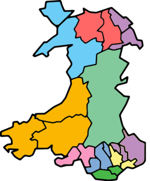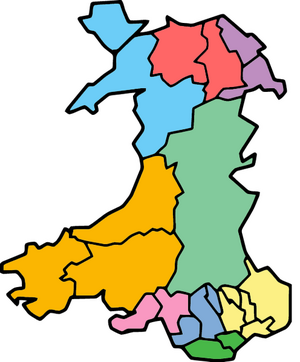 Since 1 April 1996, Wales has been divided into 22 single-tier principal areas (ويلزية: Awdurdodau unedol), styled as counties or county boroughs (ويلزية: sir or bwrdeistref sirol)[أ] for local government purposes.[1] The elected councils of these areas are responsible for the provision of all local government services, including education, social work, environmental protection, and most highways. Below these there are also (in most, but not all, parts of the principal areas) elected community councils to which responsibility for specific aspects of the application of local policy may be devolved. The last set of local elections in Wales took place in 2017, with the next due to take place in 2022.