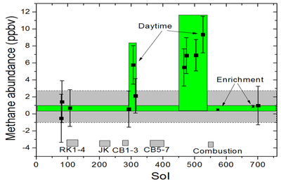 10. ^ Webster, Christopher R.; et al. (June 8, 2018). "Background levels of methane in Mars' atmosphere show strong seasonal variations". ساينس. 360 (6393): 1093–1096. doi:10.1126/science.aaaq0131. Retrieved June 8, 2018. {{cite journal}}: Explicit use of et al. in: |author= (help)